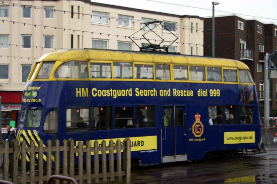 This time the date is 6th September 2008 and it would appear that it has been a wet day in Blackpool with puddles having formed on the surface which may explain why I tried to take this shot along the side of the station building at Bispham. It would have been fine if it hadn’t been for the fence located adjacent to the tramway and the concrete fence blocks the rear section of the tram. 726 was in this simple and well designed advert for HM Coastguard at the time. It would almost have been a good shot if it wasn’t for the fence! Ah, never mind, better luck next time!