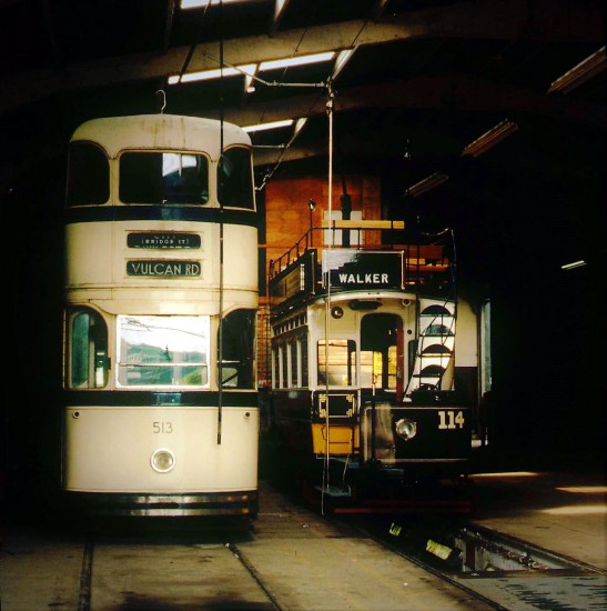 This time the trams we see sitting in the depot are two trams with a Sheffield connection: Sheffield 513 and Newcastle 114. We have featured 114 several times over the past few weeks so there isn’t much more to say about the tram, except to say that by this time it had only been back in service for three months following its extensive restoration.