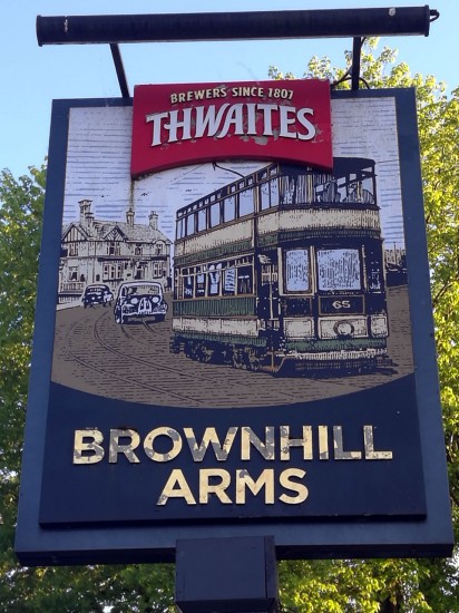 The latest entry into the “Tram Pub Signs” series is again in the northwest of England with one of the better examples of a sign at the Brownhill Arms in Blackburn.
