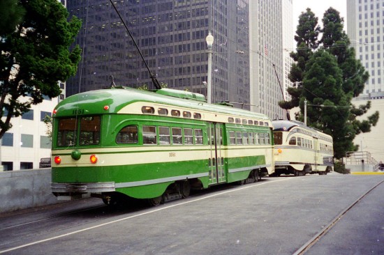 We end our time in San Francisco with one further image showing two of the PCC cars stabled at the end of the “F” line.