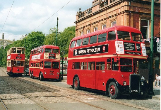 Here we see 1622 just about to pass The Red Lion at Crich where it passes two other vehicles from London. In front is Leyland Titan 7RT, RTL1163, which entered service in 1951 (when it was introduced as a tram replacement) and entered preservation in 1996 having been sold on from London Transport in 1963 for further commercial use. The second vehicle is 1948 Q1 trolleybus 1812 which would remain in service in the capital until 1961. After that it spent time in Spain where it ran in Santander before returning to the UK and undergoing restoration back to serviceable condition.