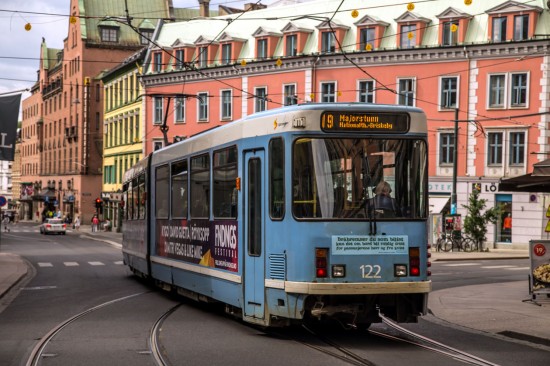 A rather battered, and looking in need of either a good clean or a repaint, SL79 122 is seen in today’s image as it works a route 19 service for Majorstuen on 11th June 2016. Introduced into service during 1983, 122 was one of the first batch of this class built by ABB at their factory to the east of Oslo on Strommen and remains in service today.