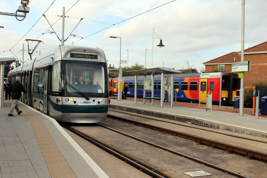 Today we take another trip to Nottingham Express Transit to see a tram alongside a train once more.