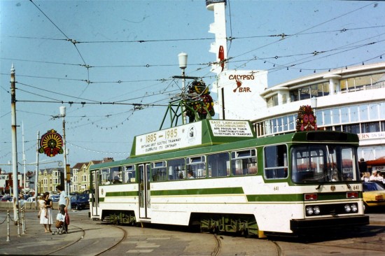 Taken in August 1984 the below photo shows Centenary 641 at Pleasure Beach, just passing the entrance to the loop as it heads northbound. Unfortunately, the policy of keeping the back blind blank at this time doesn’t help us with ascertaining just where the tram may be heading except to say its going north! 641 had only entered the service the previous month having been the first of the Centenary Cars to be delivered from East Lancashire Coachbuilders on 17th April the same year. Featuring the roof advert box which was used to celebrate the forthcoming centenary of the tram, 641 is also in the original version of green and cream that the Centenary Cars would carry.