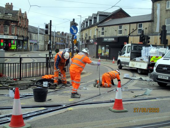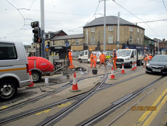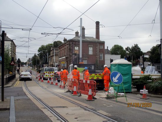 On Sunday 27th September further trackworks took place on the Stagecoach Supertram network in addition to the major rail replacement work at Crystal Peaks. This time the work was concentrated at Hillsborough Corner at the junction between the Blue and Yellow routes on the trackbed surrounding the rails, Stuart Cooke took a look at the work underway and also the finished worksite.
