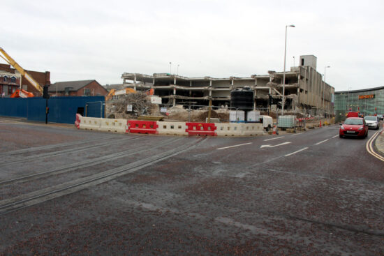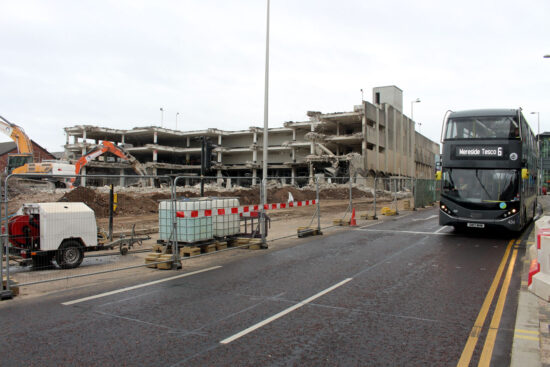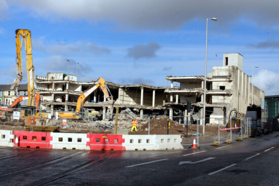 One day this picture may be an entry into the “Trams &” series! But for now as a Blackpool Transport bus passes by on Talbot Road we see the scene on 17th October with the Wilko’s structure continuing to be demolished.