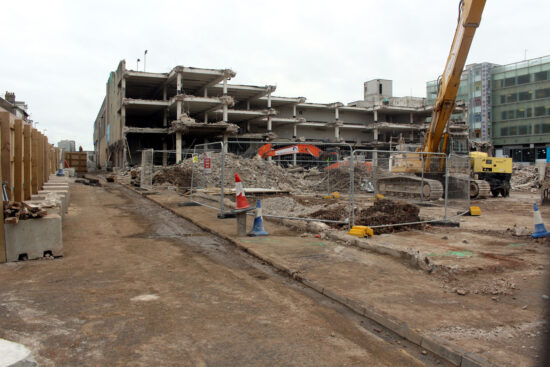 With the work on the demolition of the building having started at the beginning of September excellent progress seems to have been made with at least half of the building now have been removed. The timeline for the work on Phase Two of the Talbot Gateway project sees the demolition due to be completed by the end of the year before the next stage can commence which will include the construction of the tramway terminus and a new hotel.