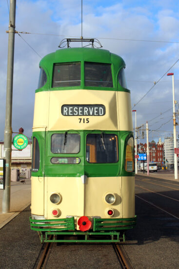We’ve seen poppies being carried on modern trams but it has been far rarer for heritage trams to be seen so adorned but that has changed for 2020 with some of Blackpool’s heritage trams spotted with the iconic red poppy. This includes the Fylde Transport Trust’s popular Balloon 715 which received poppies on the centre of the end bumpers ahead of lockdown.