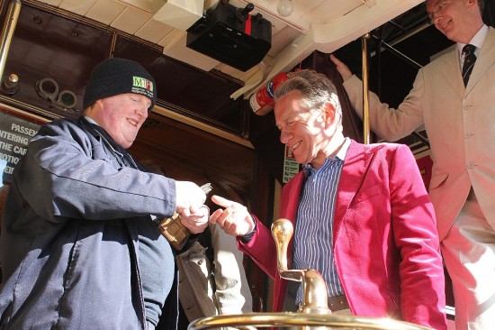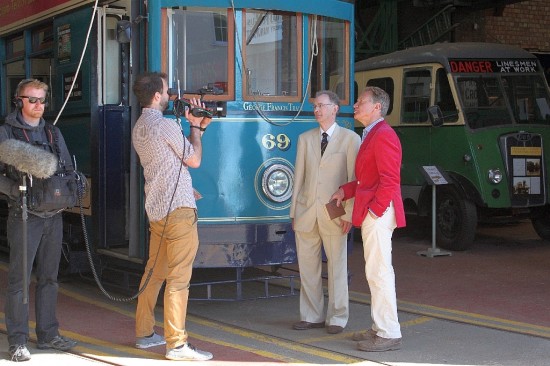 Former Transport Minister turned TV presenter Michael Portillo paid a visit to the Birkenhead heritage tramway on Wednesday 1st May. The star was filming for a future episode of his BBC television series ‘Great Railway Journeys’, and the filming session featured appearances on camera by Rob Jones of the Merseyside Tramway Preservation Society, and beautifully restored tramcar Birkenhead 20.