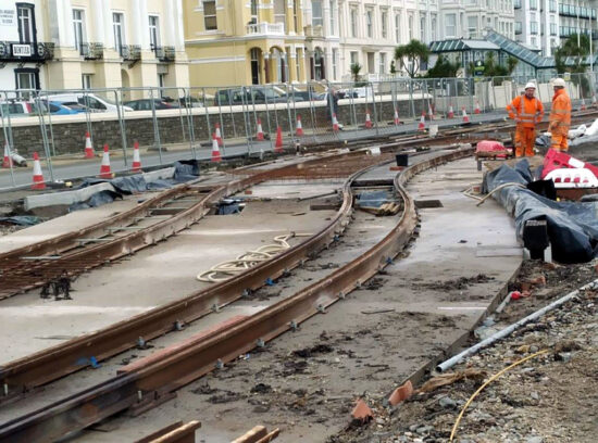 So far the part of the overall project which interests us in regards to the horse tramway is the relaying of tracks along the centre of the road as far as Broadway at which point the double track as it crosses the sea side of the Prom is also being put down. It is from there down to the Sea Terminal that isn’t yet being laid with this expected to follow next winter, although no confirmation of the exact timelines as yet.