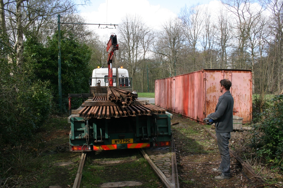 On Tuesday 30th April, some new track was delivered to the Heaton Park Tramway, Manchester to assist with the new Lakeside Depot project. The rails had been acquired from Welshpool a little while ago, and were transferred to the tramway on this day for continued storage in anticipation of work on the depot building itself commencing in the near future.