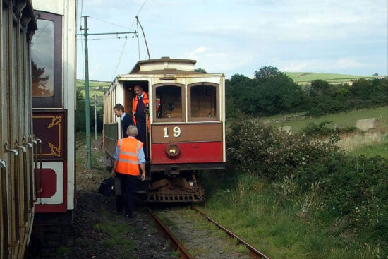 The chances are that if you have travelled on the Manx Electric Railway in the past (particularly when there was a set diagrammed to start and end the day at Ramsey) you would have seen a scene such as the below photo – a seemingly random crew change in the middle of nowhere! To ensure that crews end up where they need to be at the end of the day when the two sets met – wherever that may be, although presumably there was some pattern and it would happen in a pre-defined position – they would stop and allow the crews on the two trams to swap over.