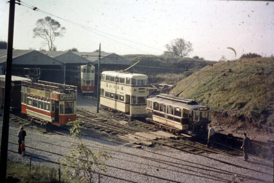 We start off with this fascinating image which has been dated as October 1965 and is a view of what is now the depot yard but was then just some tracks in front of the depot without all the fencing, gates and the like. It has been taken from road leading to today’s car park and entrance and clearly shows four trams with a few more vehicles also partially visible.