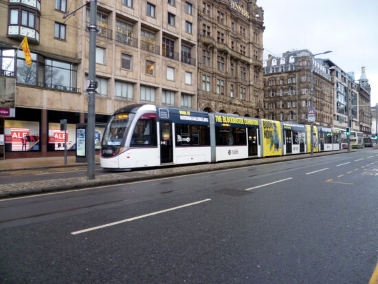 In this edition of “Lockdown Walks” we are again taking a trip to Edinburgh to view one of the trams currently carrying adverts on the network.