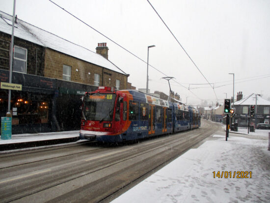 Out of the tram systems in England it seems that Sheffield gets affected the most by snow with the city being a relatively high altitude and thus getting more snow falling. There are often reports of disruption to the trams, although in most cases it has nothing to do with the trams themselves but more cars and other vehicles getting stuck in the snow and blocking the tram lines.