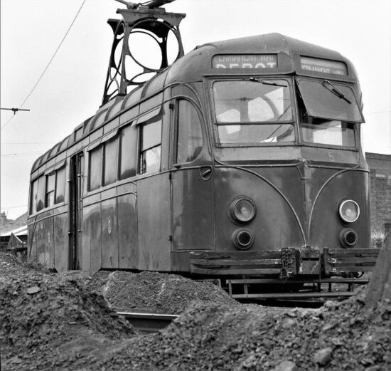 We then move to Thornton Gate – which was the Permanent Way Yard at the time and for many years later – and see the tram again. Note the destination blinds are set between “DEPOT” and “PERMANENT WAY” and that the tram retains its twin indicators.