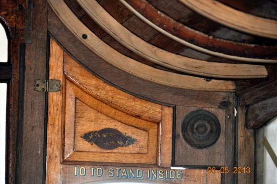 During the opening day of the Southampton Maritime Festival the Southampton Tram Project received a special guest to look at their work when Prince Michael of Kent had a tour of their work when he opened the event. We can now show you a photo of his visit and also an image from inside 38 showing the makers details still visible after all these years.