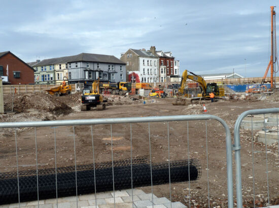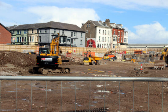 Since the end of 2020 when the last remnants of the old Wilko’s store on Talbot Road were demolished visible progress on site which will eventually become the site of the tramway terminus at Blackpool North Railway Station has been fairly limited. But over the past few weeks there has been an attempt to level off the site as preparations continue for the construction of the tram terminus as well as a new hotel.