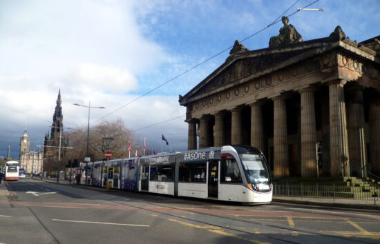 We’re off to Edinburgh again for this latest edition of “Lockdown Walks” with a view in the city centre of another one of the CAF built trams in service.
