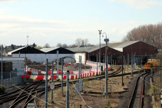 The project to demolish the existing Tyne and Wear Metro depot at Gosforth is continuing with the scheme very much in the early stages of the demolition phase. The complete project is due to take around two and a half years to complete and by the end the depot will be a state of the art facility to house and maintain the fleet of new Stadler built trains which are all due to be in service by 2024. In the meantime a temporary depot has been opened at Howdon to allow some trains to be stabled there each night with a more limited capacity available at Gosforth.