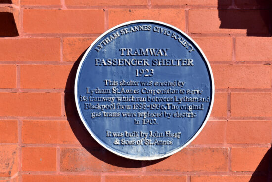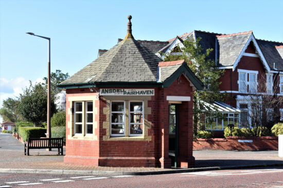 Built in 1923 – a year after Lytham St Annes Corporation had taken control of the tramway from the company – and appears to be in close to its original condition. There are seats inside and the entrance door is open but it isn’t currently in use for transport as the bus stop for Blackpool is a few metres further towards Lytham. A replica board (presumed to be a fairly recent addition) with the wording “ANSDELL FAIRHAVEN” is affixed to the building.
