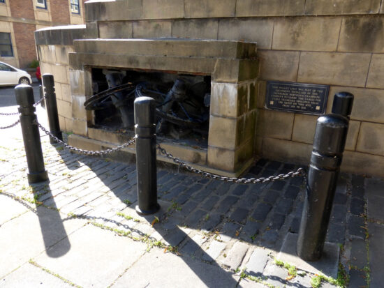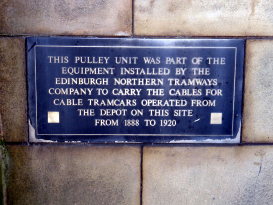 We have previously featured the Cable Tramway in Edinburgh which was originally operated by Edinburgh Northern Tramways before eventually becoming part of the Corporation Tramway network and this time round we take a look at a couple of the pulleys which were once used to run the cables which the tramway ran on. The complex operation of the cable tramway – it is said to be the most complex cable tramway to have run in the UK – required these pulleys to be in full working order to allow the trams to move along the route and during the redevelopment of this area which included the old depot façade being incorporated into a new office building for Scottish Life Assurance these were put on display to show people just how public transport was controlled at the turn of the 20th century.