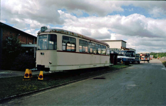 The city of Krefeld in Germany is twinned with Leicester and during the 1990s two trams from Germany were donated to the City of Leicester – motor 412 and trailer 41. Upon arrival in the UK and with a proposed tramway in Abbey Park not being progressed they found themselves having a rather uncertain time with various periods in outside storage including at both the Great Central Railway and the Great Central Railway North. The motor found its way down in Walthamstow before it was acquired by the North East Electrical Traction Trust and was moved to the North East Land Sea and Air Museum near Sunderland in 2013.