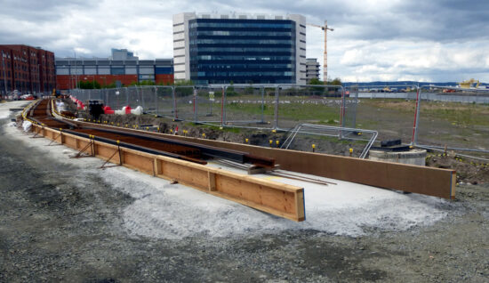 Although we saw at the end of last week that the schedule for completing each section of the Trams to Newhaven project has been slightly changed because of delays caused by the pandemic, that doesn’t mean that excellent progress hasn’t continued to be made on the first sections of constriction – far from it! In this latest pictorial update we take a look at the far end of the line at Newhaven, Ocean Drive and Stevedore Place.