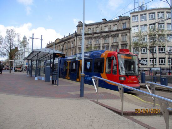 The stop at Castle Square is one of only three stop on the network which is served by all standard scheduled services (except for early morning/evening services returning to depot). With Blue route services between Malin Bridge and Halfway, Purple route working from Herdings Park to Cathedral, Yellow route services running from Middlewood through to Meadowhall and the Tram-Train service from Rotherham Parkgate to Cathedral all serving the stop it is a busy interchange for those passengers wishing to change between routes (although you can also easily change at Cathedral and Fitzalan Square of course).