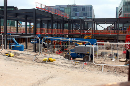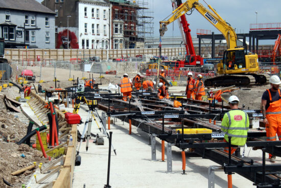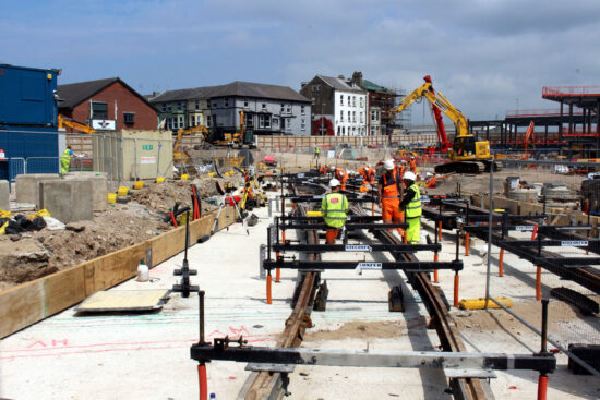 Work to lay the tracks to the Blackpool North Railway Station tramway extension terminus are continuing at a good pace as they gradually make their way to the edge of the worksite once occupied by the Wilko’s store. They have now gone beyond the scissors crossover at which point they start to curve round to the terminus. Tony Armitage with this latest update.