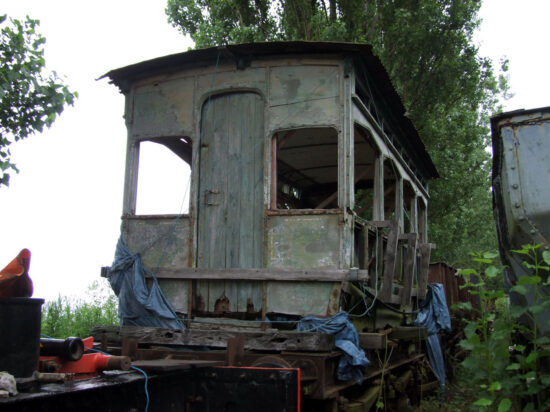 It is believed that this lower saloon once belonged to Newcastle Corporation Tramways “A” class tram no. 117 (similar to 114 at Beamish) which was built by Hurst Nelson in Motherwell in 1901. It was rebuilt as an open balcony car five years later and was then sold on for further use in Sheffield in 1941. Its final withdrawal came in February 1951 and it then eventually found its way to a farm close somewhere in the East Midlands. There it remained until 2019 when the Industrial Diesel Railway Preservation Group acquired it.