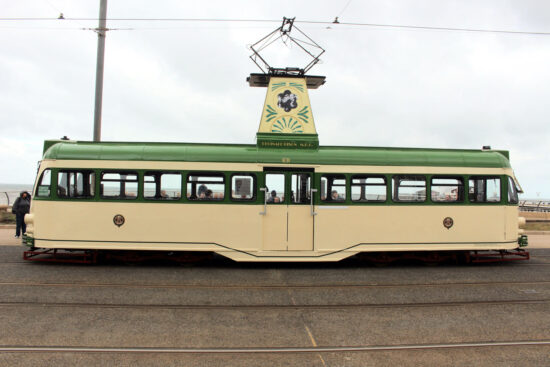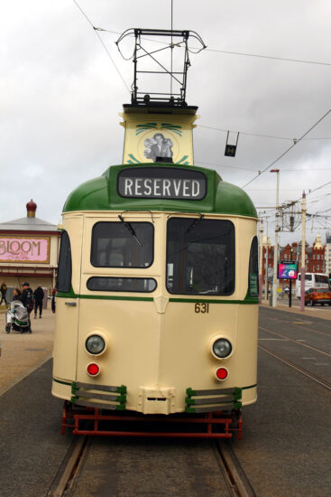 631 has been absent from service for some time and during this time it has been treated to a repaint in Rigby Road’s Paint Shop. As well as the application of the new livery style it has received images of Reginald Dixon in the pantograph tower with the name Reginald Dixon M.B.E. added at the base of the tower. Fleet numbers have been applied both above the centre doors and also on each end of the tram in the 1950s/1960s font style.