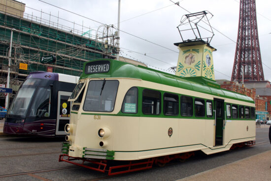 Friday 6th August saw a tram return to service after workshop attention in Blackpool as Brush Car 631 was officially launched into service after a special ceremony which also saw it named Reginald Dixon M.B.E. The new paint job is a version of the 1950s green and cream style although the tram retains all of its modern additions and still carries the 631 number which was only applied in the 1968 renumbering.