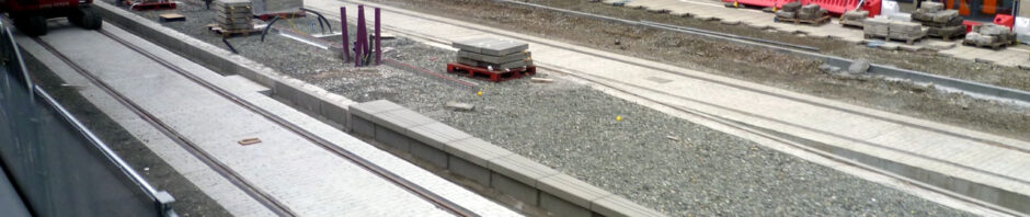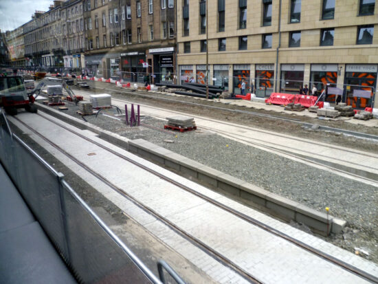 While most of the photos we have shown of the Trams to Newhaven project have concerned the installation of track and the preparations for that to happen there has also been some work on the construction of the stops – such as that at McDonald Road.