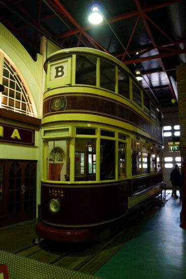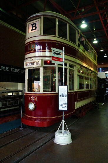 Hull 132 is on loan at the Streetlife Museum from the Tramway Museum Society having been cosmetically restored. After discussions in recent years the loan agreement has now been extended and the tram will remain on display in its home city for some time to come. The museum isn’t the easiest to photograph with cramped conditions and low-level lighting but here we see 132.