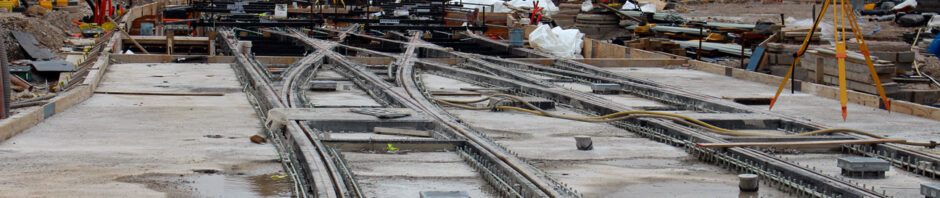 A close-up of the north curve frog to allow trolley operated trams to run up Talbot Road as well as those pantograph fitted.