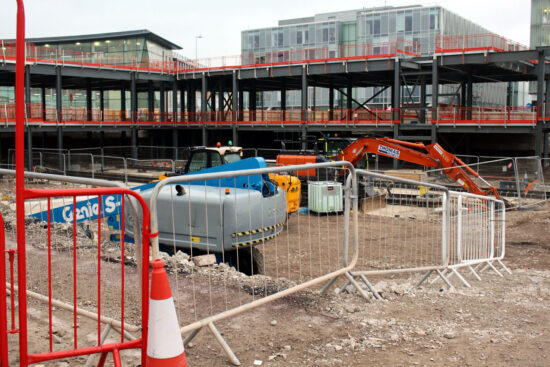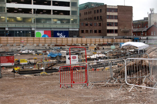 Meanwhile, at the former Wilko’s site work is continuing on the track installation. In this image we look towards the scissors crossover. Concrete has been poured up to that location with it still be put down further along.