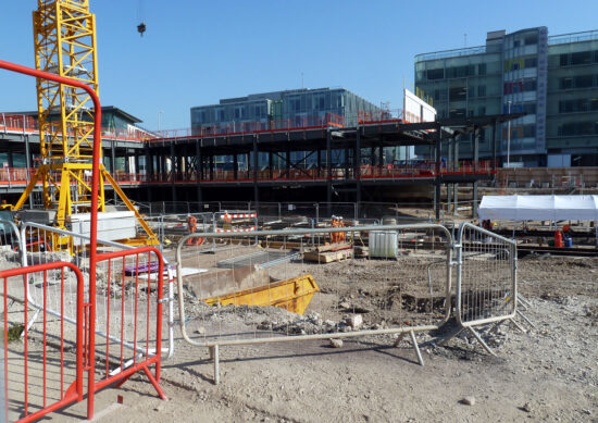 Looking across the worksite and the white tent is located where the dirt track once was but now track is down.
