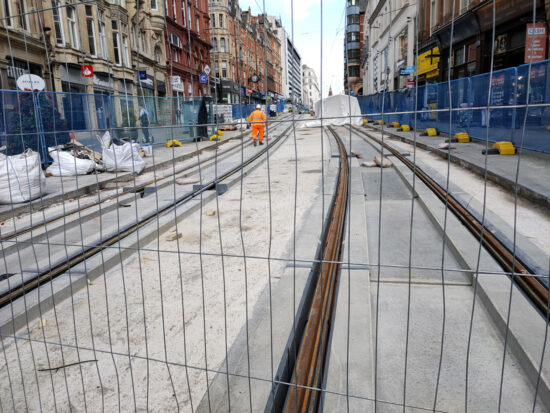 The past week has seen further progress on the track relaying project in Birmingham City Centre with rails continuing to be laid along Corporation Street ahead of a planned reopening of the line to Library in the next month or so. The closure of the line beyond Bull Street has been in place since 24th July but now some two months later and we should be on the home straight to a full tram service running again soon.