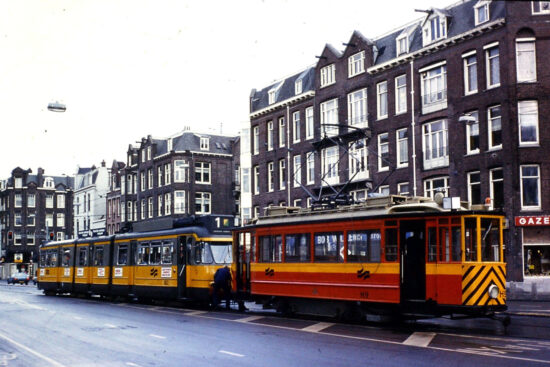 It was a case of being in the right place at the right time for this photo taken in April 1983 as Amsterdam Works Car H9 was captured coming to the rescue of a failed tram. The failed tram is a Beijnes 1G class of tram numbered 867 and was scrapped in 1994. And the Works Car? That still survives to this day although is no longer a Works Car as it has been restored to its passenger condition as 469 as is now at the Hannoversches Strassenbahn Museum in Germany.