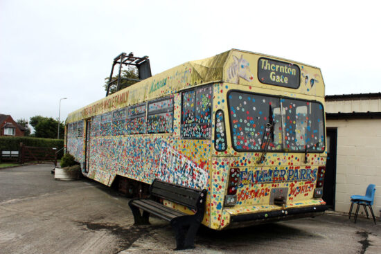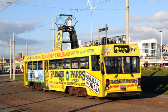 Back in January 2012, Blackpool Centenary 644 became the first of the class to leave Rigby Road Depot permanently as part of the great tram sale following the tramway’s upgrade. Its new owners were a long-term sponsor on the tram, Farmer Parr’s Animal World in nearby Fleetwood, who acquired it for display and possible conversion into a children’s play area. Now almost 10 years later and the tram has found itself in a sticky situation – or a situation where it is now plastered in stickers at any rate!