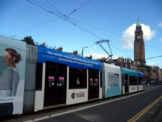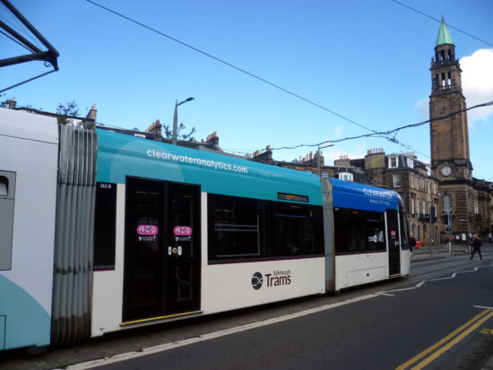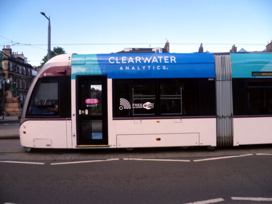 Edinburgh Trams 262 has become the latest tram in Edinburgh to return to carrying adverts with it noted in service at the end of September advertising Clearwater Analytics – who are apparently the world’s most trusted and accurate investment, accounting and reporting solution. This is the first advert on the tram since the end of 2019.