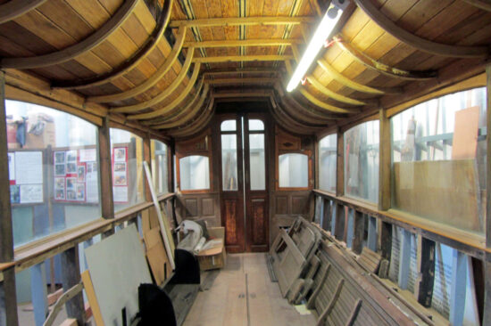 Although currently sat on wooden blocks in the new workshop, 11 does have a truck and it is planned that shortly the motors will be dried out and worked on to allow it to be united with the body of 11. While there are currently no plans for operating the tram it is hoped that a short section of track will be constructed leading from the workshop into the yard outside in the not too distant future.