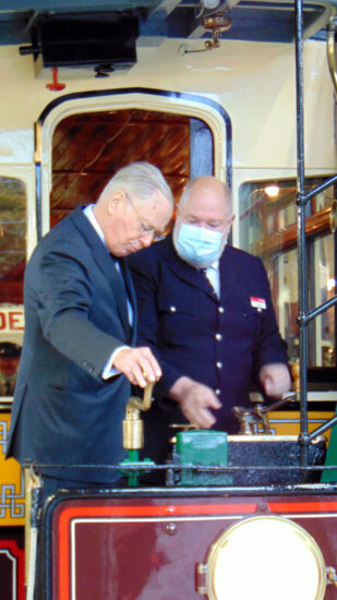 HRH Duke of Gloucester was on hand at a special members day at the Crich Tramway Village on Wednesday 20th October to drive Newcastle 102 out of the Workshop to re-launch it after its Tramcar Sponsorship Organisation funded restoration. Although not quite ready for a full return to service – with more testing to come – this was a significant step in the return to service for 102 which is sure to be a popular addition to the operating fleet at Crich.