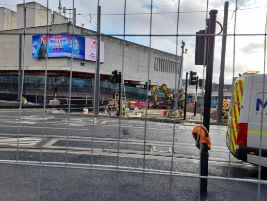 This is as far as the tracklaying onto the Eastside goes. The current line onto Corporation Street is seen at the far side of the picture.