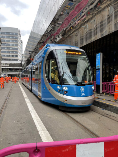 As the driver of Tram 34 it felt good to be driving back through Birmingham City Centre. A somewhat unusual experience, accompanied by many engineers, with members of the public looking in through the fencing.