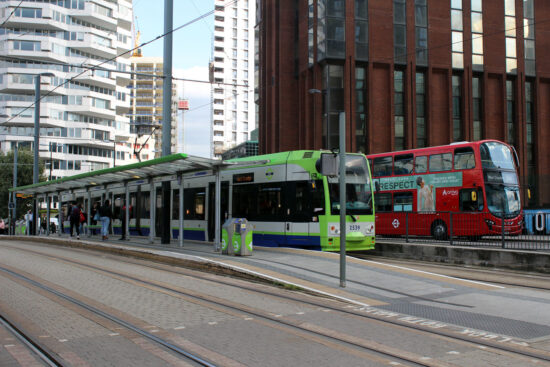 This time we are in South London with this image taken at East Croydon on the London Tramlink network. The three platform layout at the tramstop is seen to good effect here as 2539 gets ready to depart from the stop with a service which is heading for West Croydon according to the destination display although in reality will not terminate as it just goes round the central Croydon loop before it returns to New Addington.