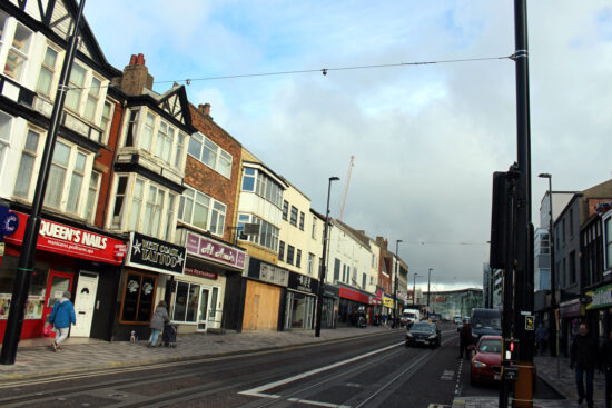 Looking up Talbot Road towards the terminus. The cream/beige building in the centre mid-distance is the new hotel/restaurant.