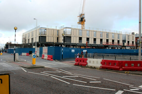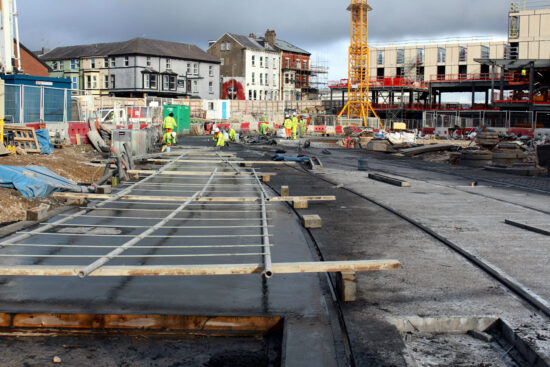 The other area of attention for the contractors has been in the former Wilko’s site where not only has work being taking place on constructing the landmark hotel and restaurant but there has further progress on laying concrete around the tracks. As a reminder the tracks leading from the entrance to the site to the terminus have been fully in place for a few weeks now.