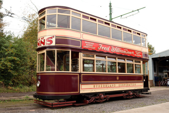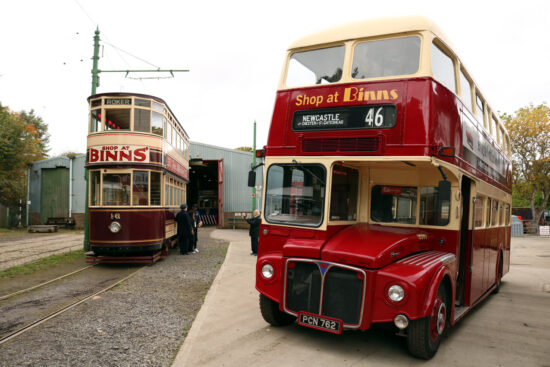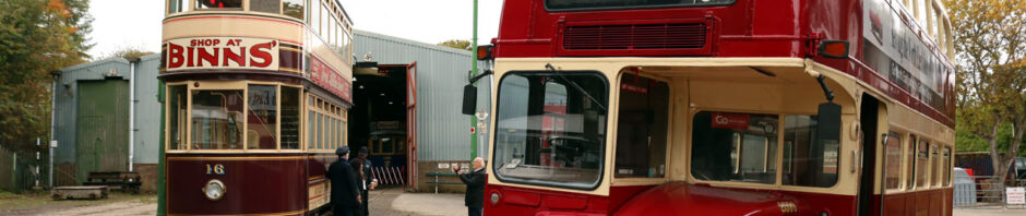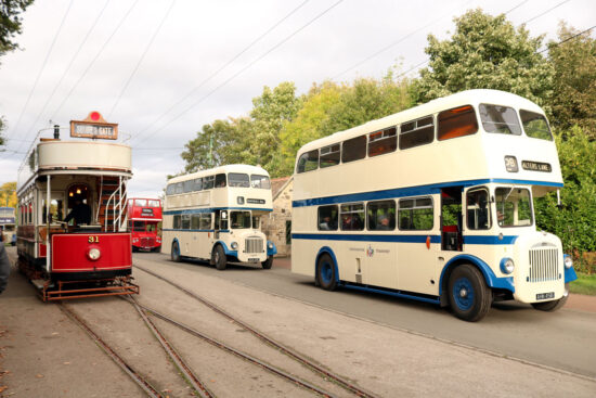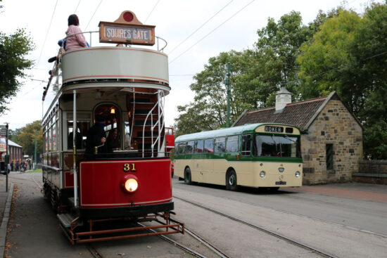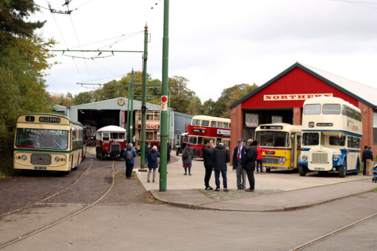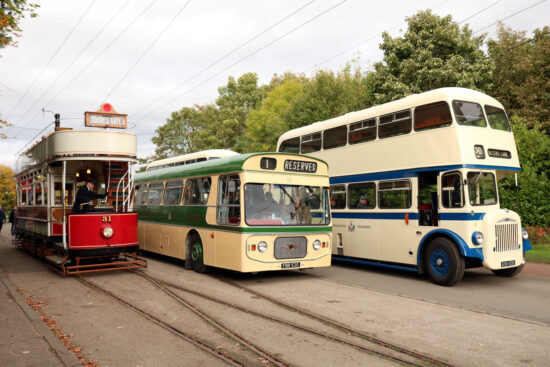 On Saturday 23rd October, Beamish held their second transport based event since re-opening after the pandemic with a Bus Running Day taking place. As well as resident buses there were a number of visiting vehicles and with the trams (Blackpool 31 was the chosen tram for service) also running it gave the opportunity to get some unique photos. In this pictorial article – a kind of “Trams &” special! – we feature some of those unique photo opportunities. Trevor Hall is the photographer.